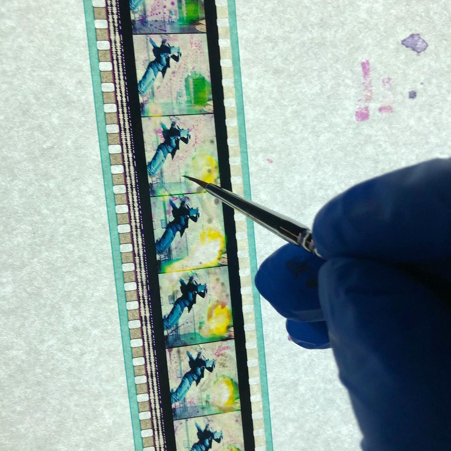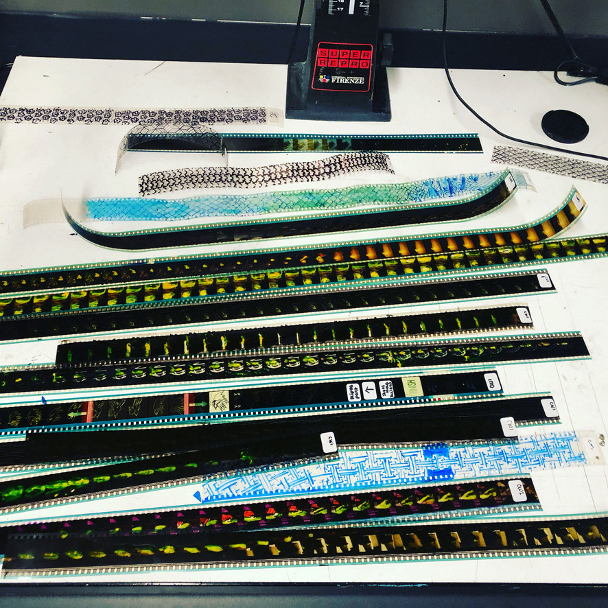 We used additional techniques such as collaging onto the 35mm film with printed transparencies