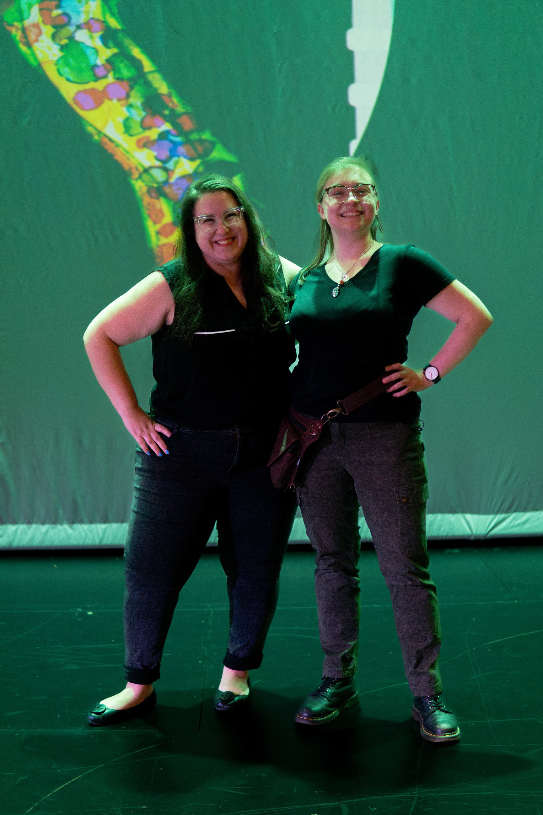 Christine Banna (left) and intern Piper Charron (right) after one of the performances
